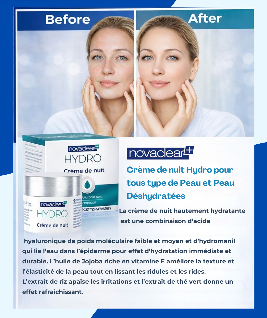 L’efficacité du produit a été confirmée par des tests d’application réalisés sur des personnes ayant la peau sèche et déshydratée.