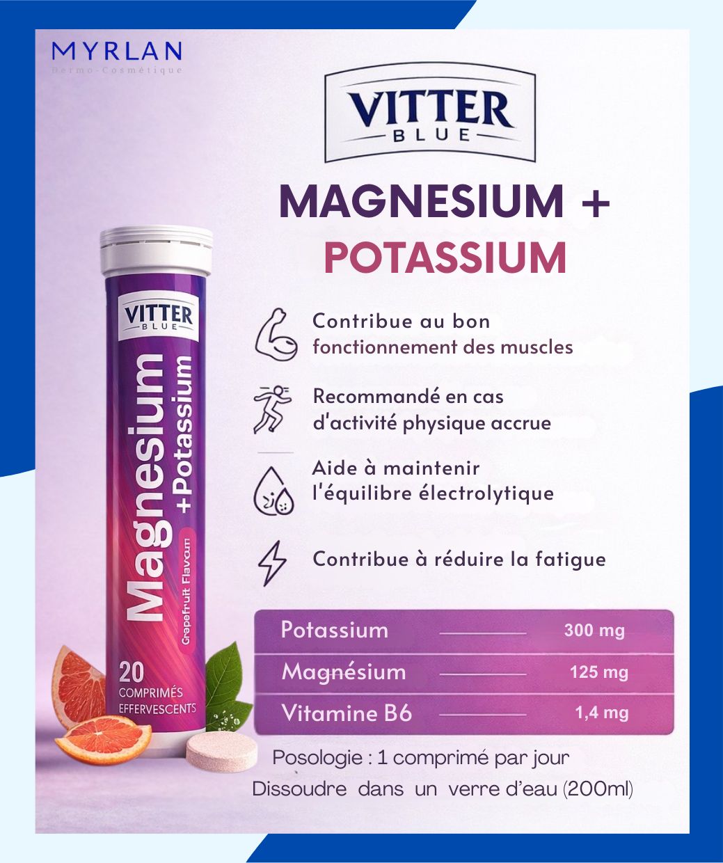 Le magnésium et le potassium contribuent au bon fonctionnement musculaire et, associés à la vitamine B6 , au bon fonctionnement du système nerveux.