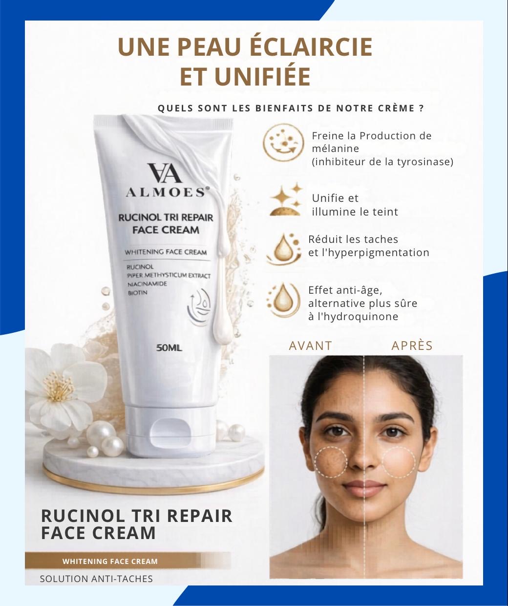 Crème visage Tri Repair au Rucinol. Traitement topique de l’hyperpigmentation. Format : 50 ml .