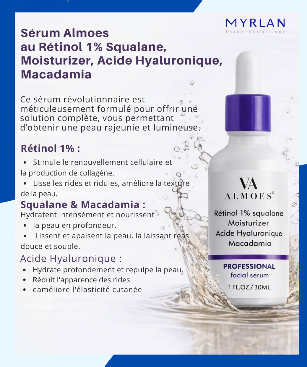 Almoes Rétinol, squalane, Hydratant, Sérum de Macadamia. Une Solution puissante de 1% Rétinol 30 ml.